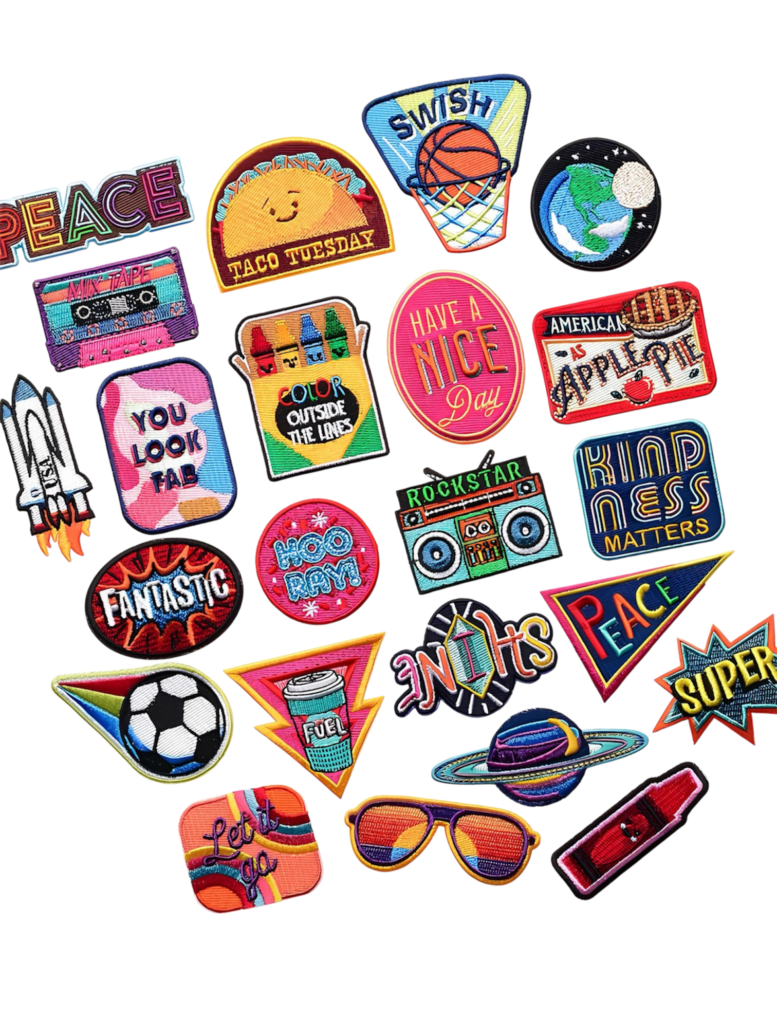 Shop custom embroidery, DTF heat transfers, Iron on patches, and blanks